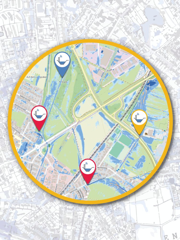 Dabei spielen Typ und Hersteller des Systems keine Rolle; es muss lediglich eine Fernübertragung der Messwerte möglich sein (per LoRaWAN). Werden die von der Kommune definierten Grenzwerte überschritten, erzeugt HydroWarn eine Alarmierung mit der entsprechenden Warnstufe.