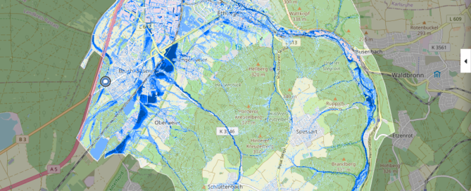 Die baden-württembergische Stadt Ettlingen und die benachbarte Gemeinde Waldbronn engagieren sich sehr für die Verbesserung der Hochwasservorsorge. Hydrotec erarbeitete für die Kommunen ein Handlungskonzept für kommunales Starkregenrisikomanagement. Es basiert auf einer Starkregenrisikoanalyse anhand einer Modellierung mit HYDRO_AS-2D.