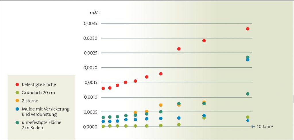 Flächenabflüsse im Modellvergleich für Elemente der Regenwasserbewirtschaftung