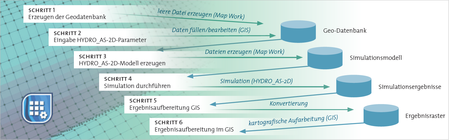 Das Postprocessing unterstützt HydroAS MapWork durch eine Routine zur Umwandlung von Simulationsergebnissen in GIS-kompatible Rasterdatensätze.