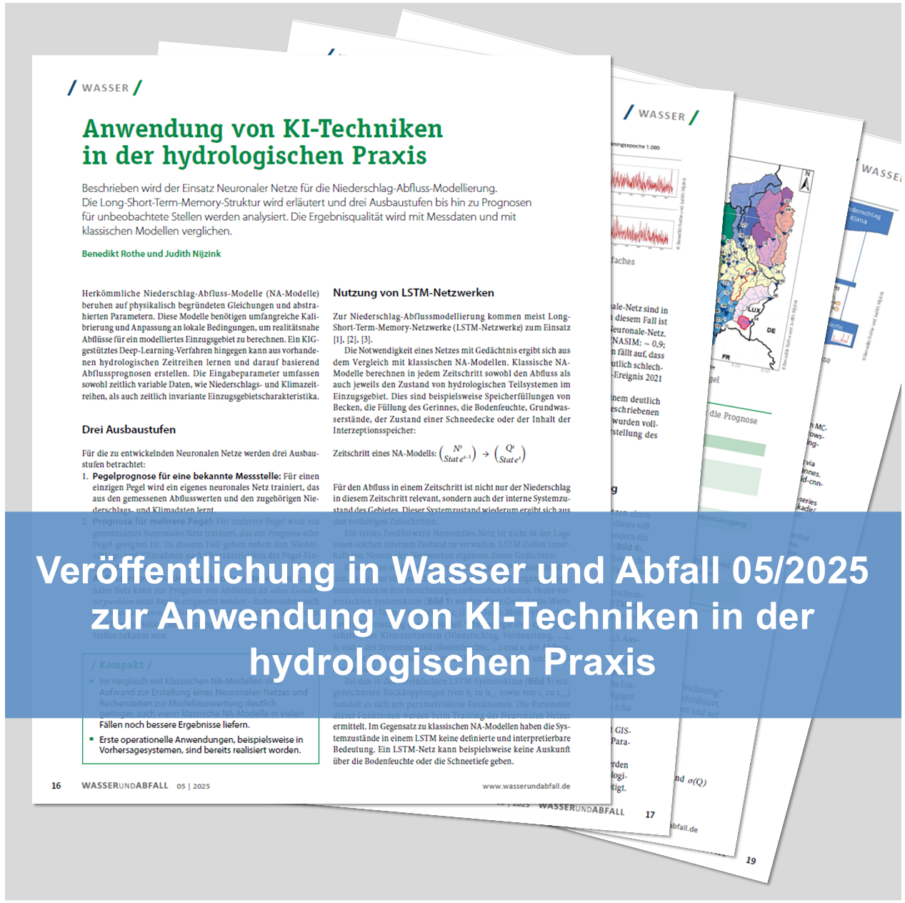 Rothe, B.; Nijzink, J.: Anwendung von KI-Techniken in der hydrologischen Praxis. In: Wasser und Abfall, (2025), Heft 5, S. 36-39